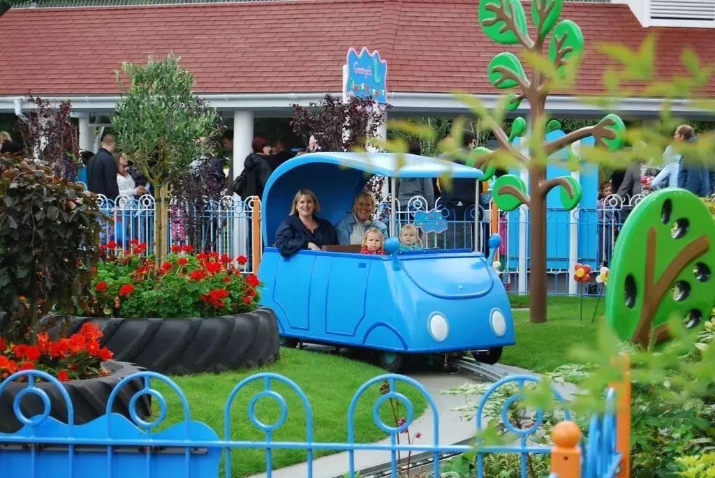 在小猪佩奇乐园里,游客可以乘坐佩奇爸爸的车一起寻找小猪佩奇的小伙伴们!